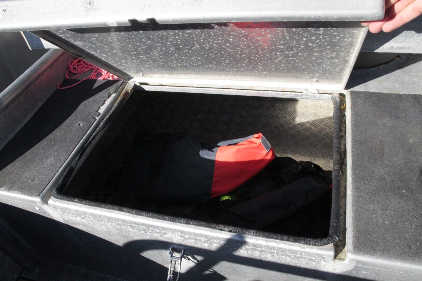 Die Fischkiste sitzt vorn sicher im Rack, abgedeckt und verspült – ready für frisches Seafood vom Feinsten